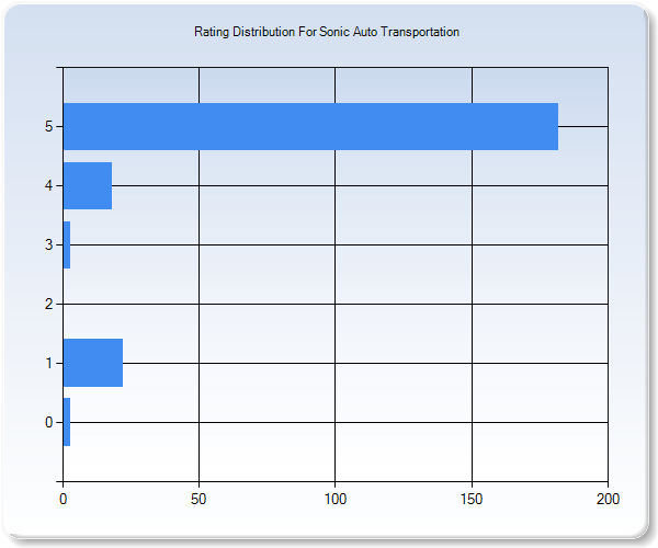 The graph below shows how the ratings are distributed from the total number of reviews for Sonic Auto Transportation